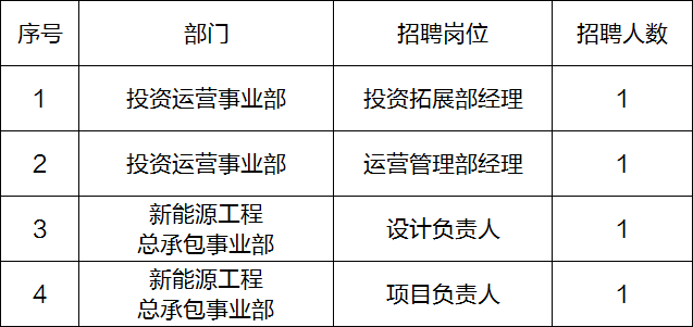 3-5年新能源项目开发或投资经验,主导过1个完整项目前期开发,拥有央企新能源相关项目经验者优先。