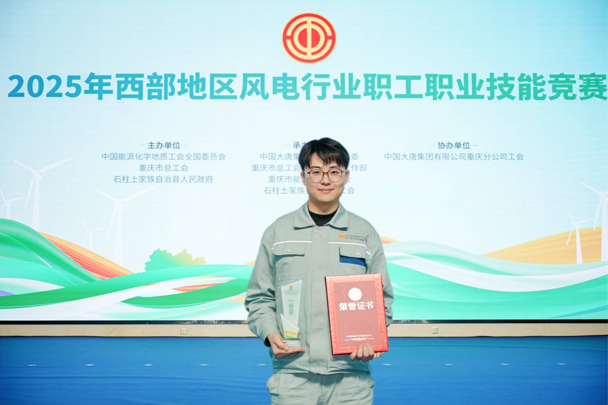胡磊斩获2025年西部地区风电行业职工职业技能竞赛风力发电机组专业第一名(大唐重庆新能源事业部供图)