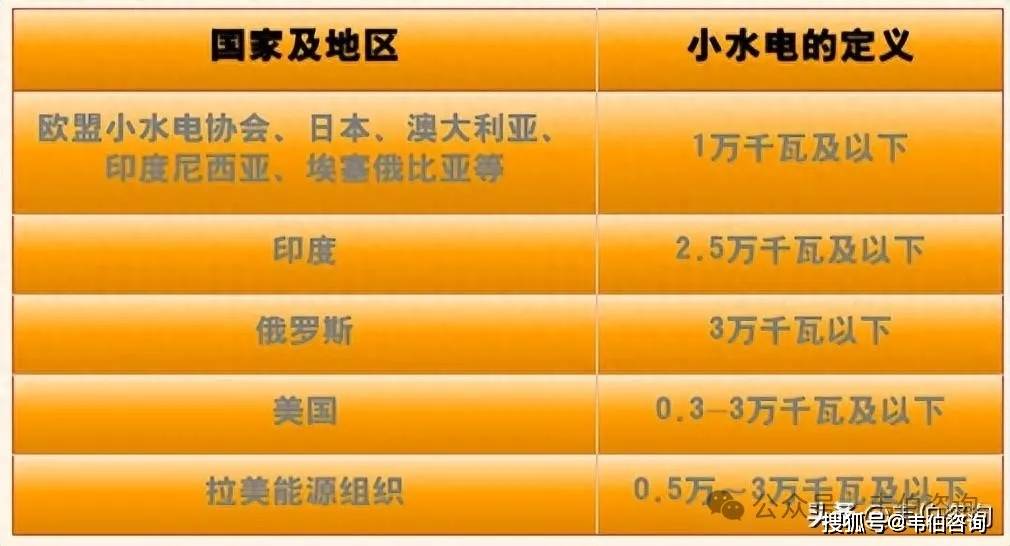 小水电的装机容量界限在不同的国家、不同的时期有不同定义。大部分国家将小水电单站装机容量界限定义在1万千瓦及以下。